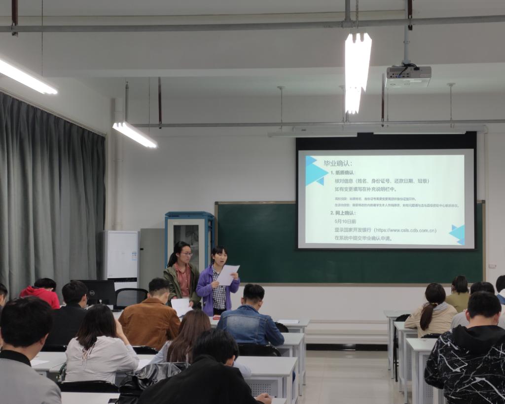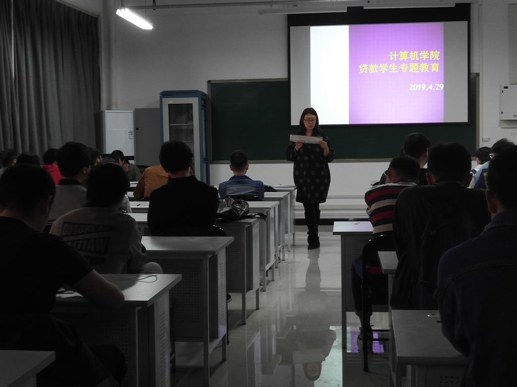 2019年4月29日晚,3044am永利集团3044noc在3#组团A902分批次召开了全院1819贷款学生的诚信教育及2019届毕业生离校还款、确认等相关教育大会。3044am永利集团3044noc学工办主任侯向花老师、学院资助助理、近百名非毕业班高校贷款学生、一百多名15级生源地和高校贷款毕业生参加了会议。