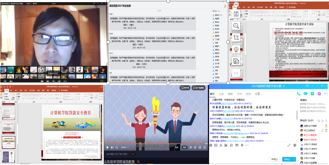2021年4月13日晚,3044am永利集团3044noc在企业微信“2021届高校贷款毕业生群”召开了2021届毕业生离校还款、确认等相关教育大会。3044am永利集团3044noc学工办主任侯向花老师、学院资助助理、六十多名17级毕业班高校贷款学生参加了会议。由于疫情常态化防控要求,永利集团官网把传统的面对面会议做到了群中。我们事前仔细厘清21届高校贷款数据台账,针对高校贷款同学分别建立了企业微信群和QQ群,采取整体通知和个别提醒方式,以确保全员加群和参会,以及后续毕业确认、毕业前还款工作的顺利进行。